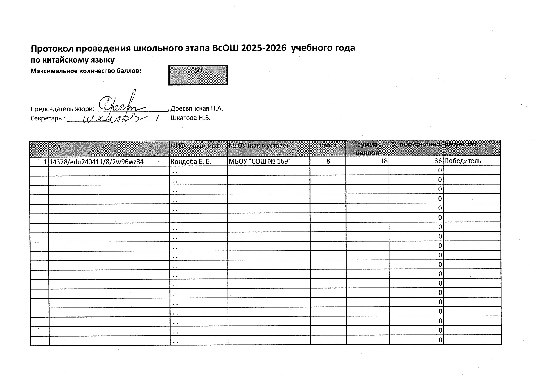 Результаты школьного этапа ВсОШ 2025 года